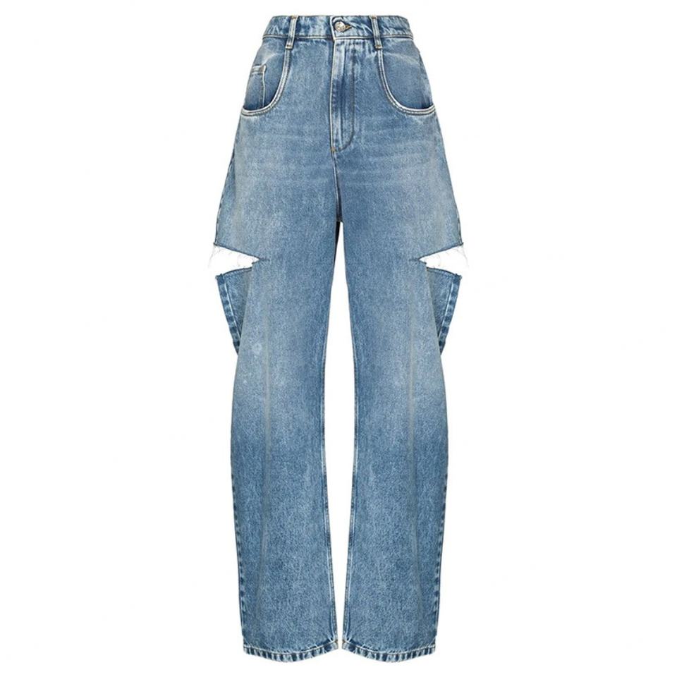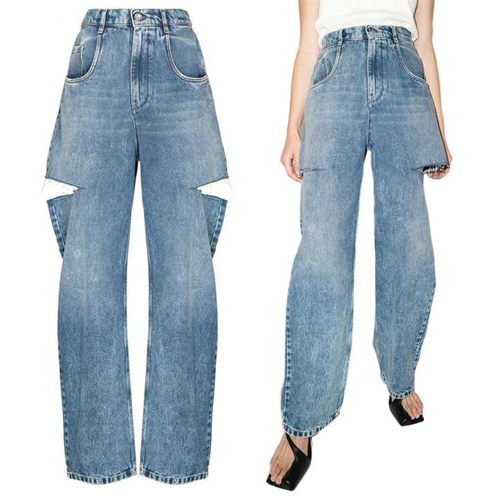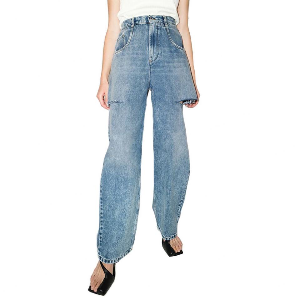 Custom Women Blue Cut Out High Waist Denim Jeans Trousers Distressed Straight Leg Jeans