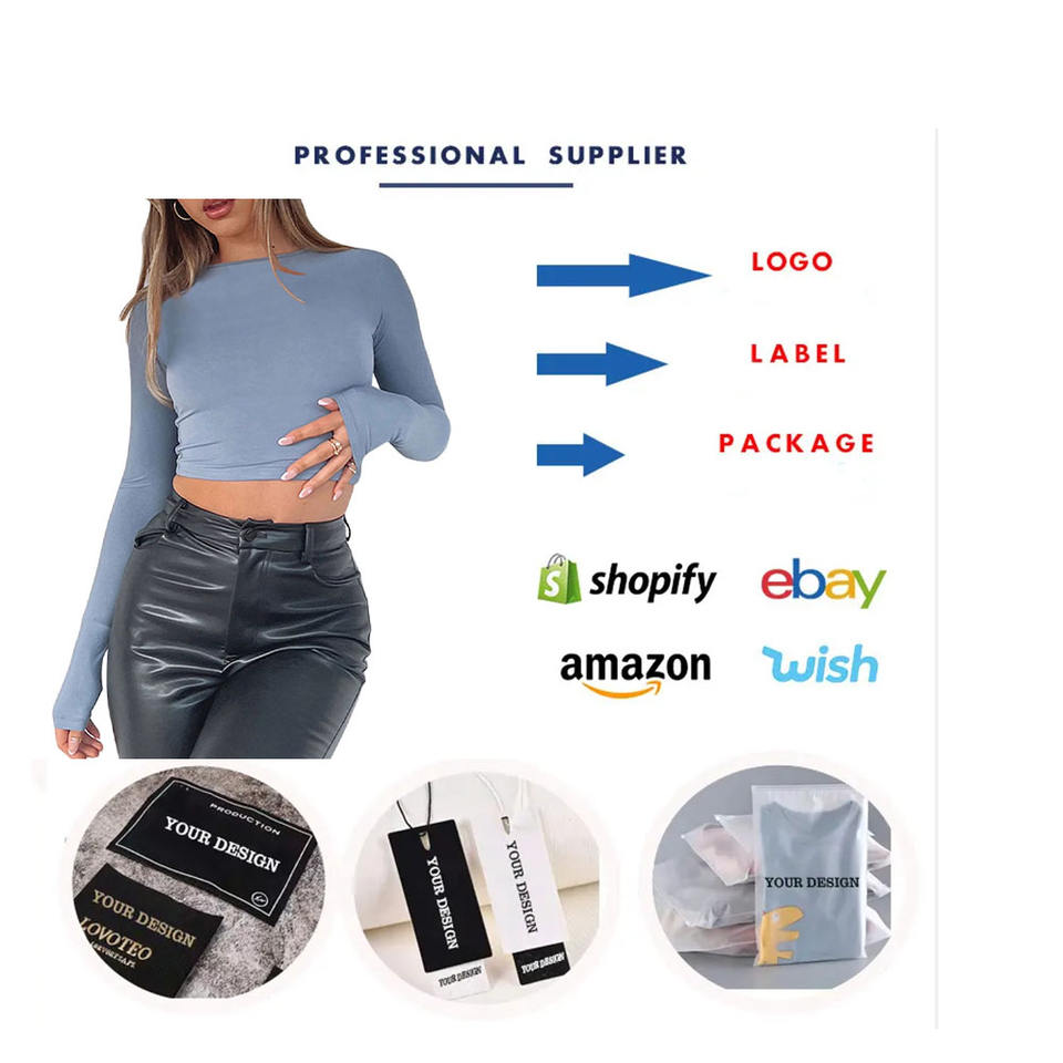 Custom Women Cutout Long Sleeve Top Quality Tshirt Low Cut Hollow Out Open Back Blouse Crop Top Tee O-neck T-shirt for men