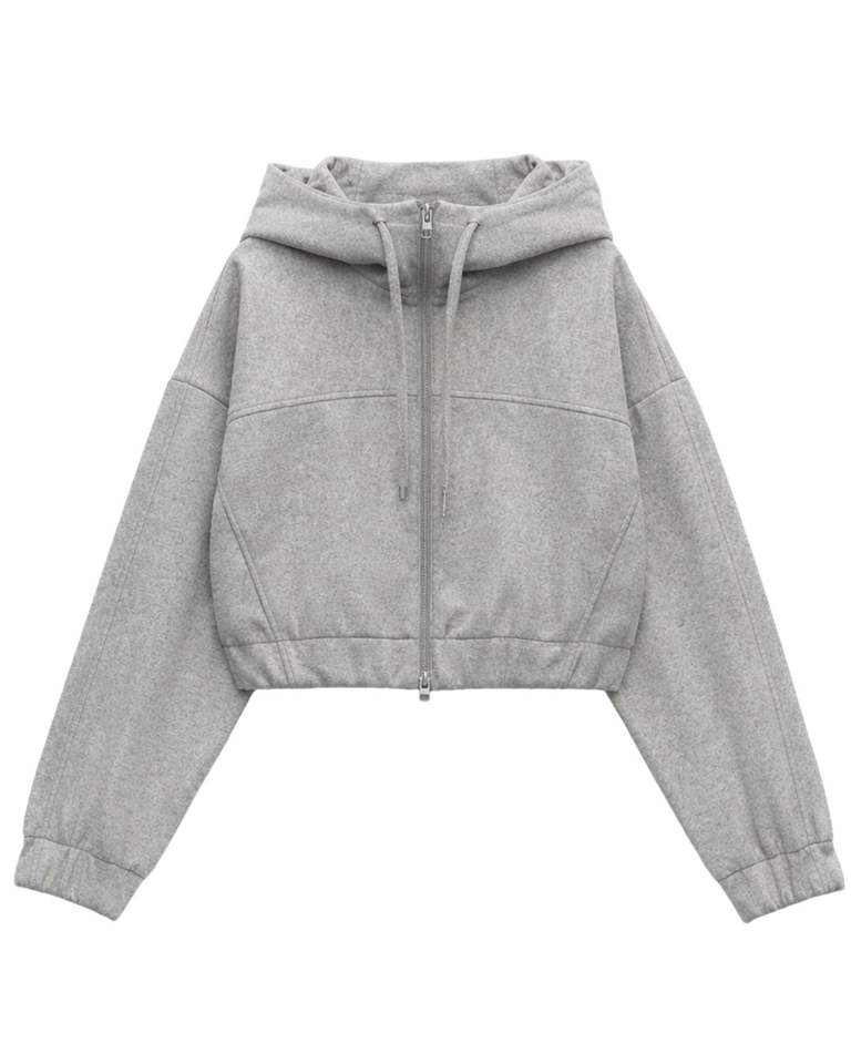 Custom Women Grey Cropped Zip Up Hoodie Long Sleeve Drawstring Hooded Sweatshirt Casual Streetwear Winter Fashion Top For Ladies