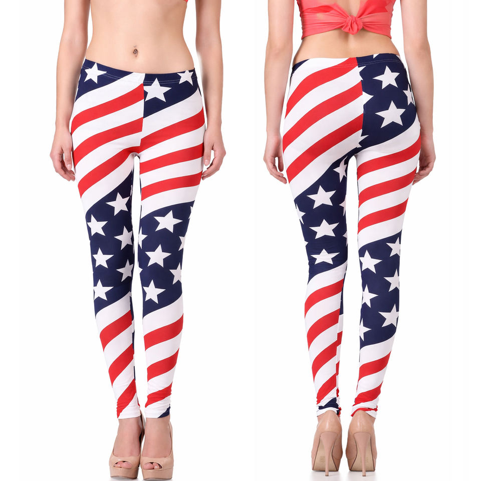 Custom Women High Waist American Flag Printed Leggings Stretch Fashion Full Length Pants