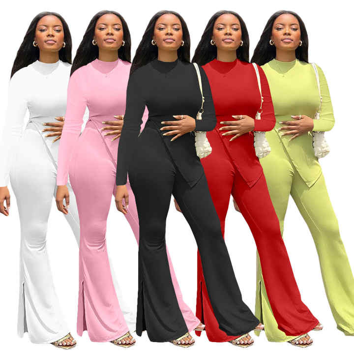 Custom Women Long Sleeve Two Piece Zip up Hoodie Jacket and Flared Pants High Quality 2 Piece Tracksuit Loungewear Set