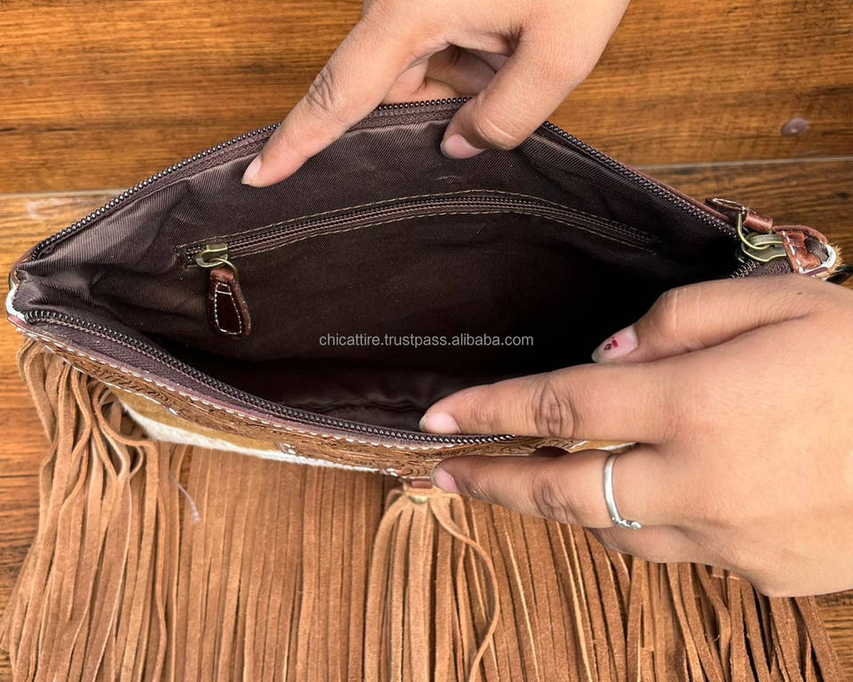 Product name:Hand Tooled Leather Fringe Bag & Cowhide Bifold Wallet