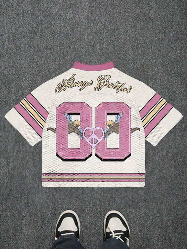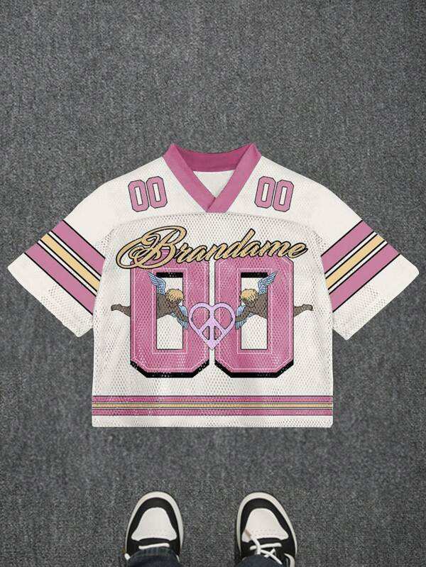 Custom Women Oversized Mesh Crop Jersey Y2K Streetwear Graphic Number Print V Neck Wholesale Bulk Supplier 2026