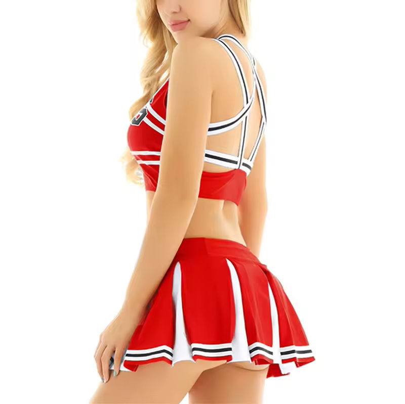 Custom Women Printed Spandex/Polyester Sexy Cheerleader Costume Schoolgirl Cheer Uniform Set for Halloween Play