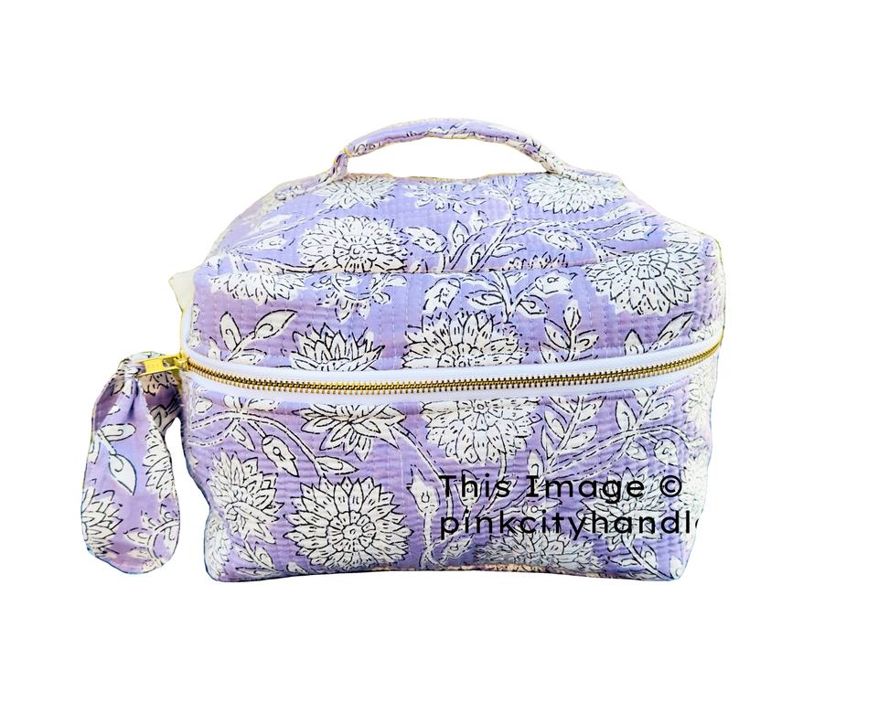 Custom Large Quilted Zipper Floral Beauty Pouch Women's Fashion Vanity Cosmetic Bags Cotton Travel Cosmetic Bags