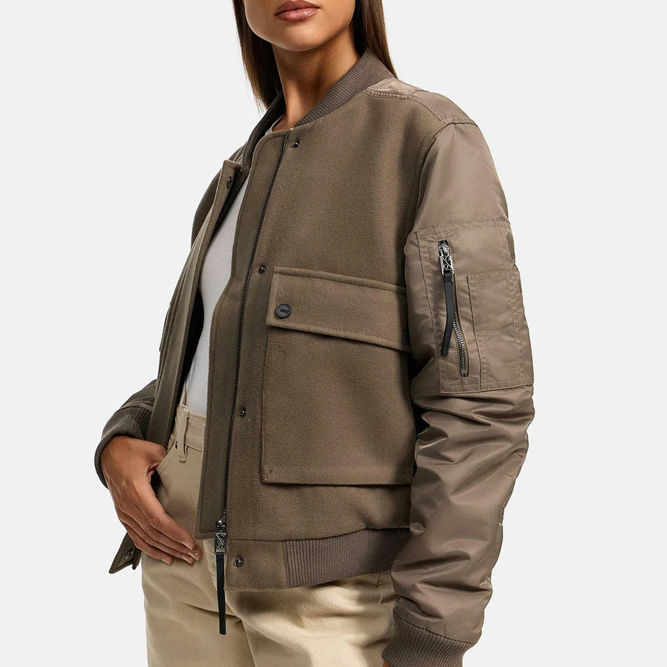 Custom Women Varsity Jackets Wool Body With Pockets Leather Sleeve Lettermen Women Jackets 2025