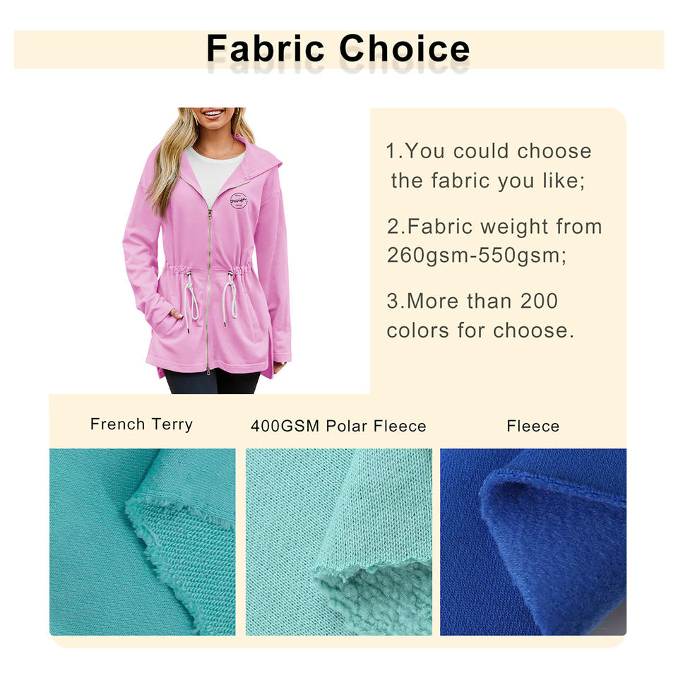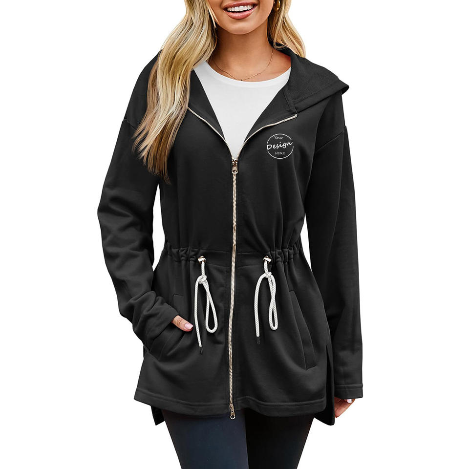 Model Number:Custom Women's Zip Up Tie Waist Hoodie