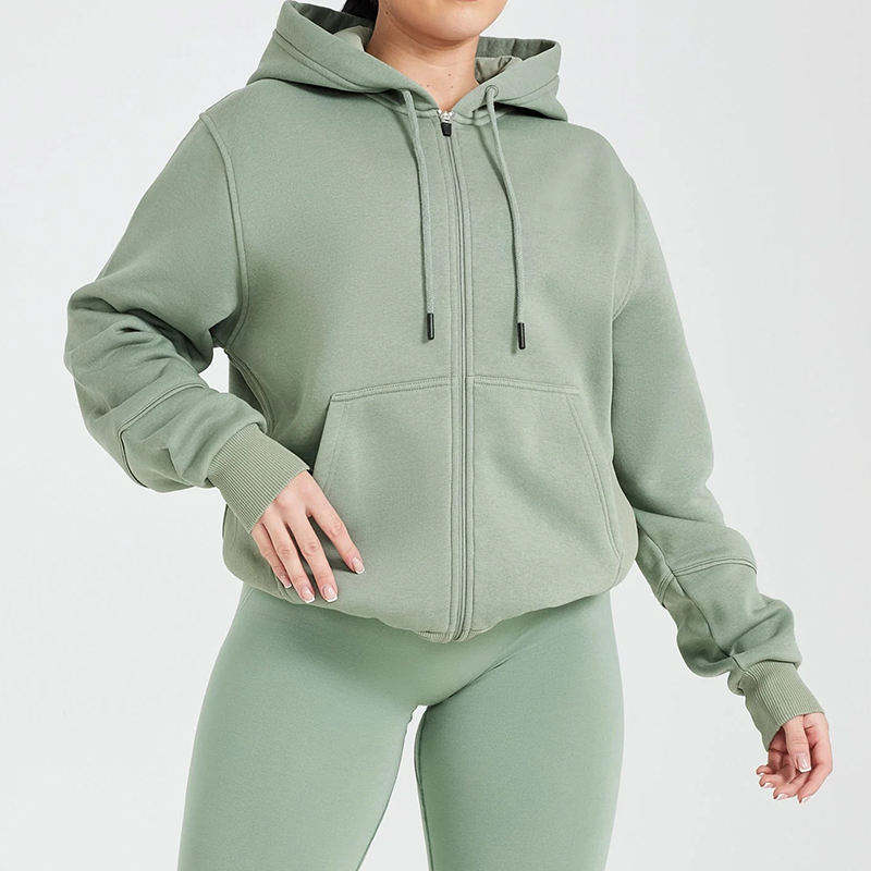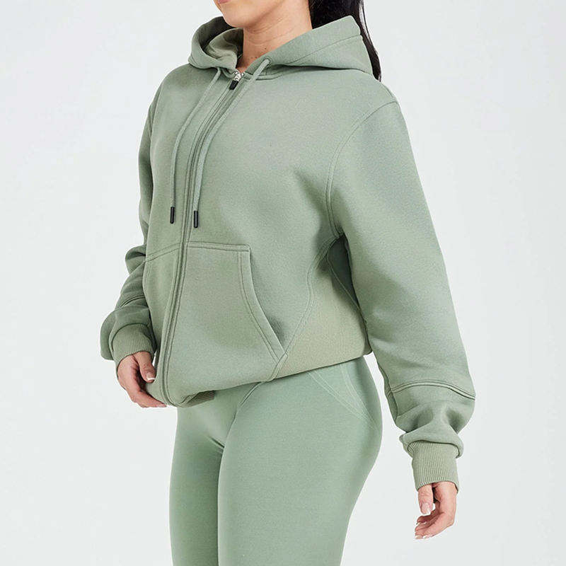 Custom Women Winter Fleece Lightweight Cotton Zip-Up Hoodie Long Sleeve Oversized Streetwear Workout Lounge Casual 3D Embroidery