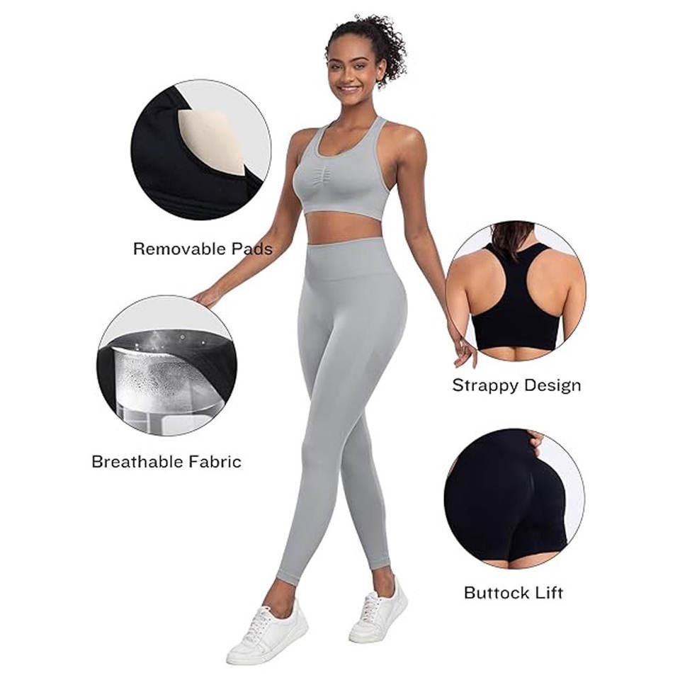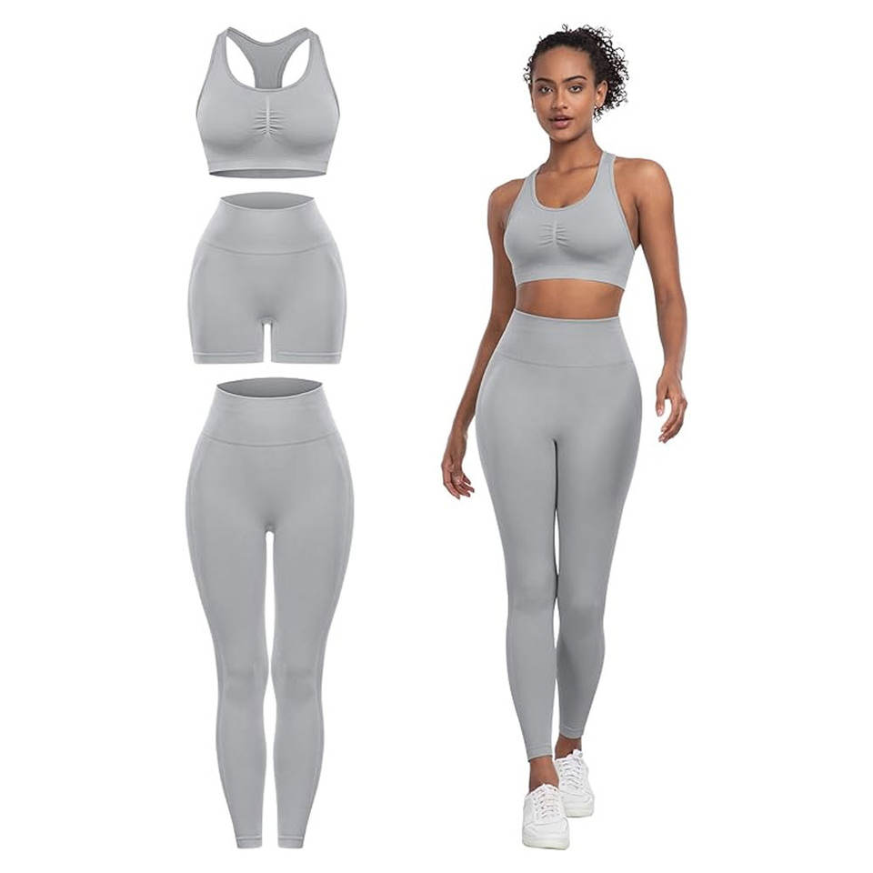 Custom Women Workout 3 Pieces Sets Yoga Fitness Clothes Sports Bra and Leggings Set Gym Clothes Active Wear Shorts Sets