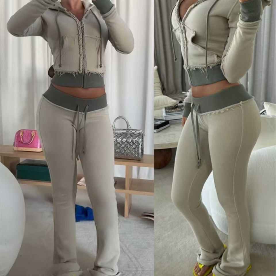 Custom Women's 2-Piece Set Distressed Cropped Hoodie & Long Pants Breathable Solid Casual Winter Season Embroidered Technics