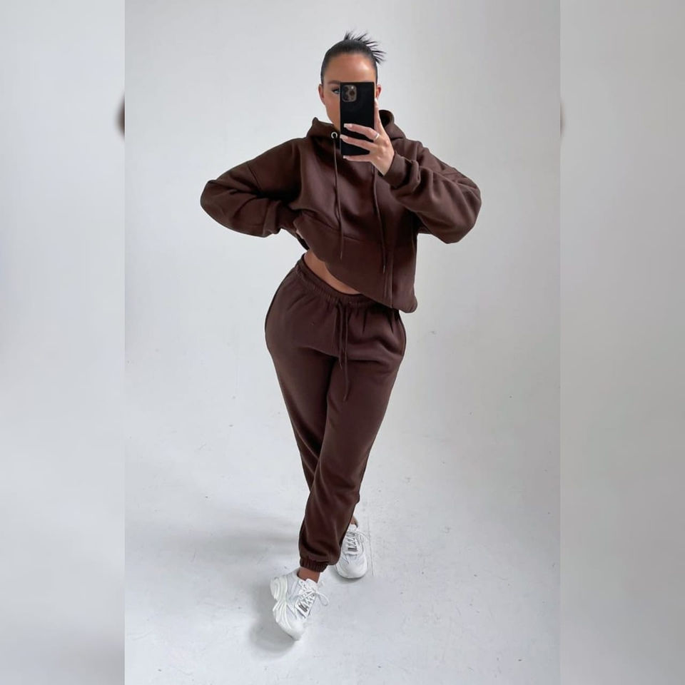 Custom Women's 2-Piece Set 100% Cotton Fleece Sweatsuit Workout Outfit Including Sweatshirt Sweatpants Lounge Tracksuit Set