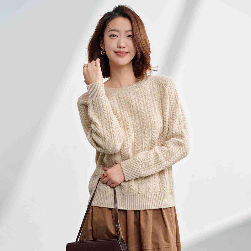 Custom Women's Cashmere Sweater Pullover Thick Blended Crew Neck Ribbed Knitting Wool Cashmere Sweatshirt