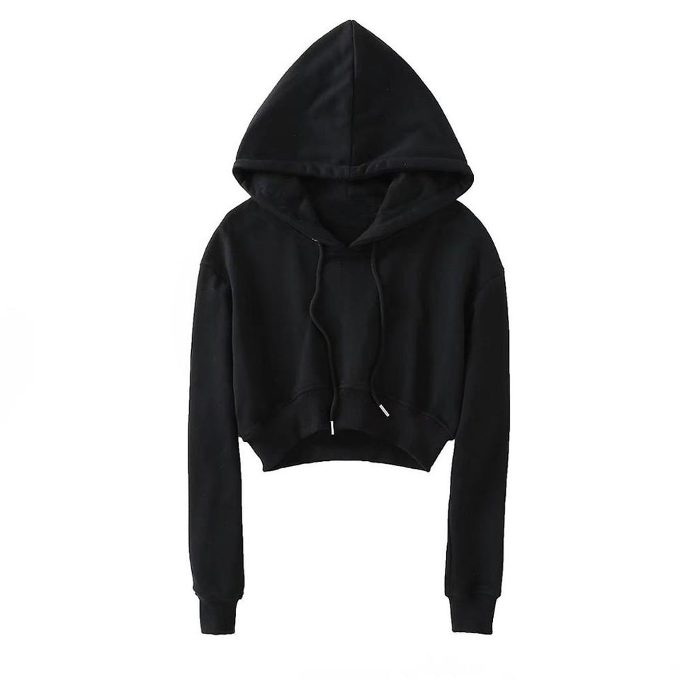 Custom Women's Casual Cropped Hoodie Sweatshirt Fleece Knitted Drop Shoulder Front Printed Logo Quick Dry Breathable Winter