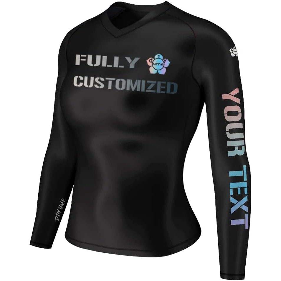 Custom Women's Customizable Long Rashguard Performance Compression Jersey Shirt Sport Fightwear Made of Nylon and Spandex