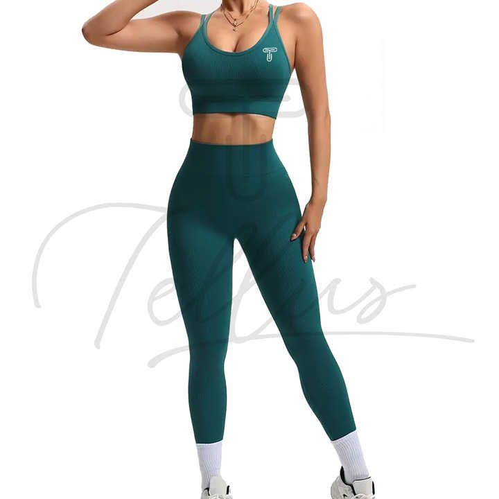 Custom Women's Fitness Leggings & Sports Bra Set with Front Logo-Yoga Gym Wear Shorts Leggings