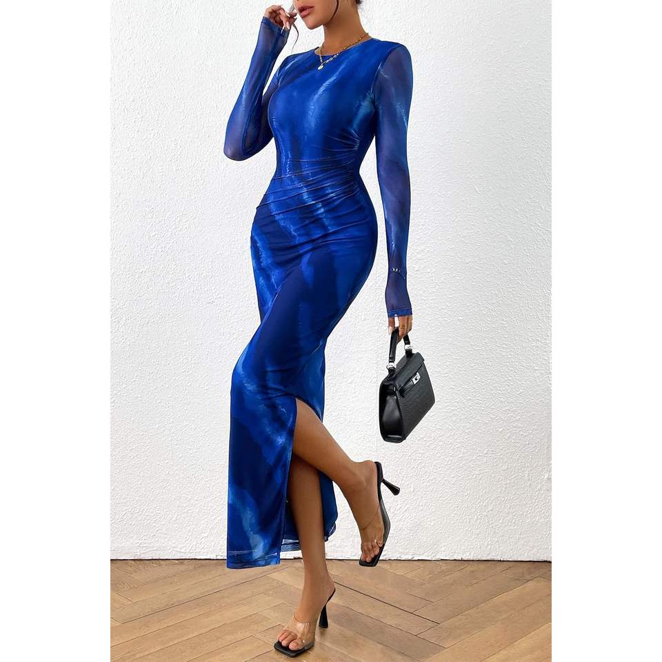 Custom Women's Floral Print Bodycon Maxi Dress Fall Spring Fashion Long Sleeve Ruched Party Club Dresses Tight Fitted