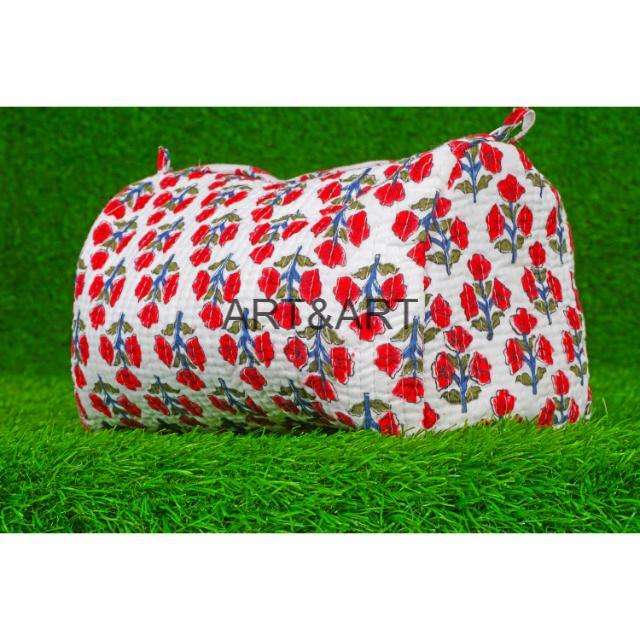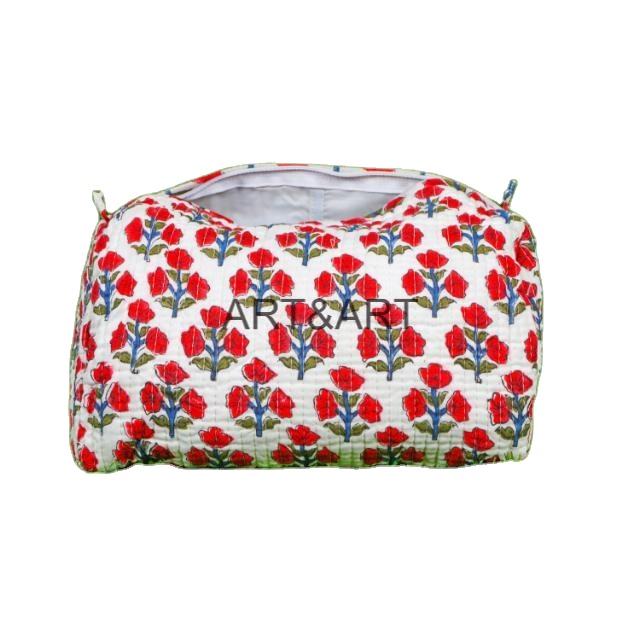Custom Women's Floral Printed Cotton Knitted Cosmetic Pouch Bag Vintage Style Zipper Case for Travel and Makeup
