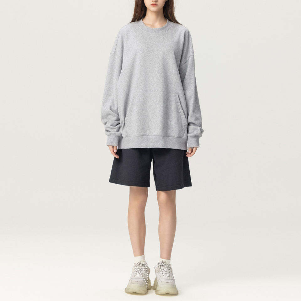 Custom Women's Heavyweight Fleece Sweatshirt 420G Round Neck Distressed Pullover with Pocket OEM ODM Wholesale Supplier