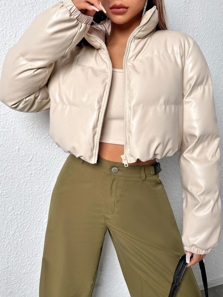 Custom Women's High Quality Hooded Zipper Down Winter Jacket Warm Crop Puffer Bubble Coats for Outdoor Casual Wear