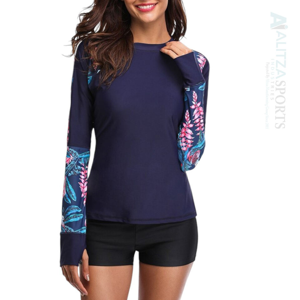 Custom Women's Long Sleeve Rash Guard Bra Top Handmade Washed Lightweight Quick-Dry Fabric UV Protection Plus Sizes for Beach