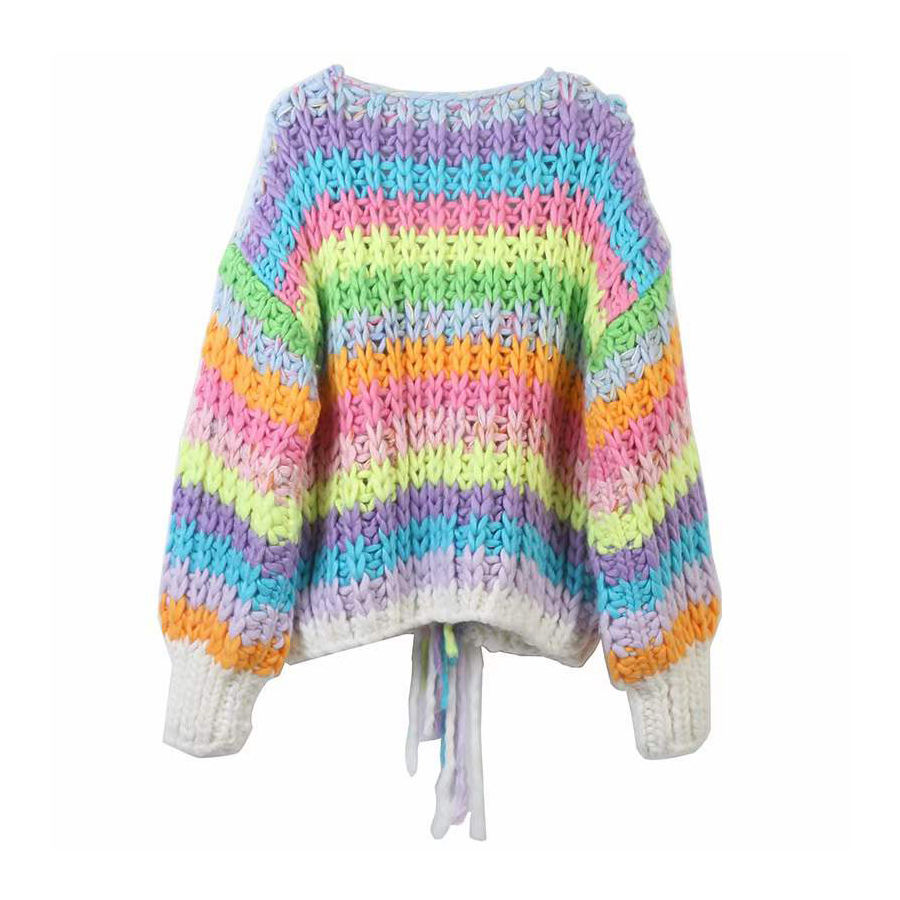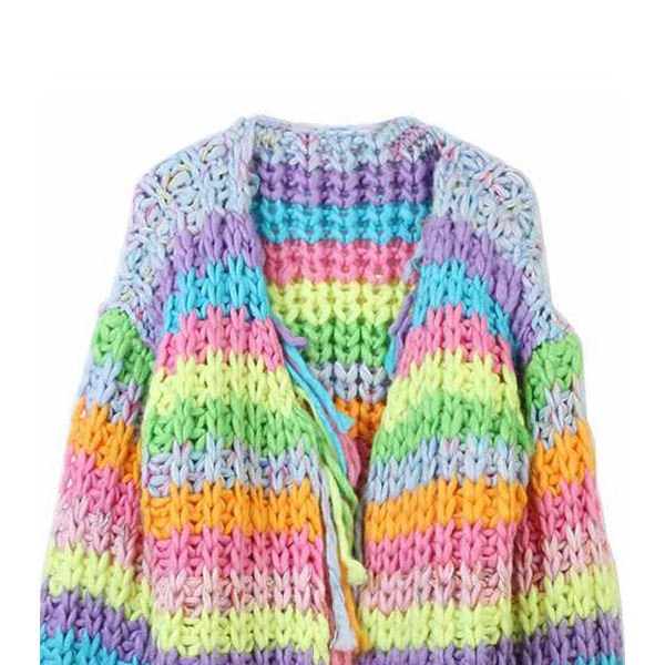 Custom Women's Loose Handmade Maternity Crochet Sweater Stripe Print Cardigan for Winter Lady Female Size
