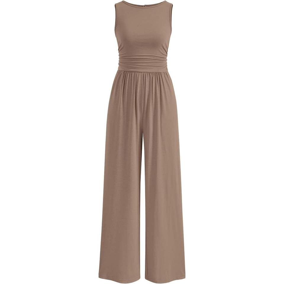 Custom Women's One-Piece Jumpsuit Print Decorated Sleeveless Crewneck Wide Leg Romper Dressy Casual Vacation Summer Outfit