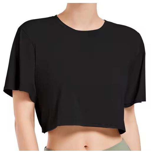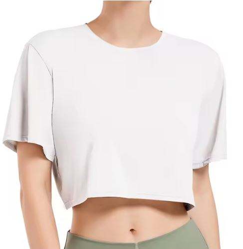 Custom Women's Pima Cotton Workout Short Sleeve Shirts Loose Crop Tops Gym Shirt Casual Cropped T-Shirts