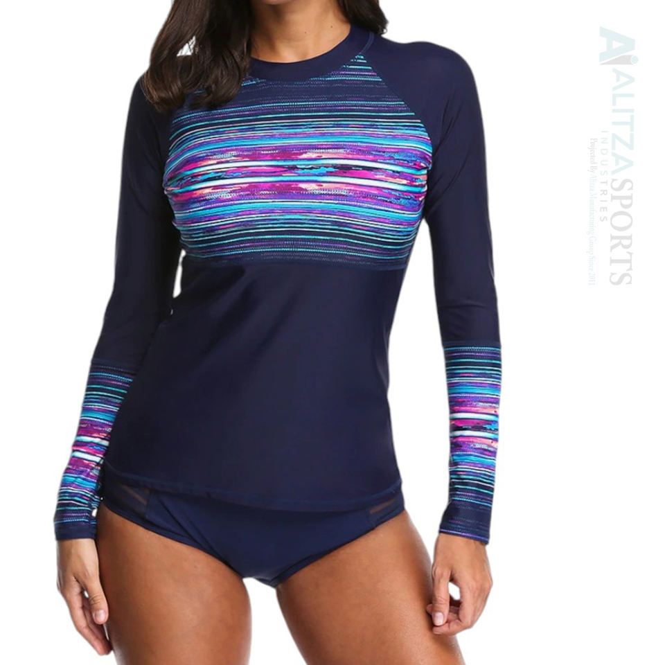 Custom Lightweight Quick-Dry Women's Long Sleeve Rash Guard Bra Top UV Protection Print Tie Cut Handmade Techniques Plus Sizes