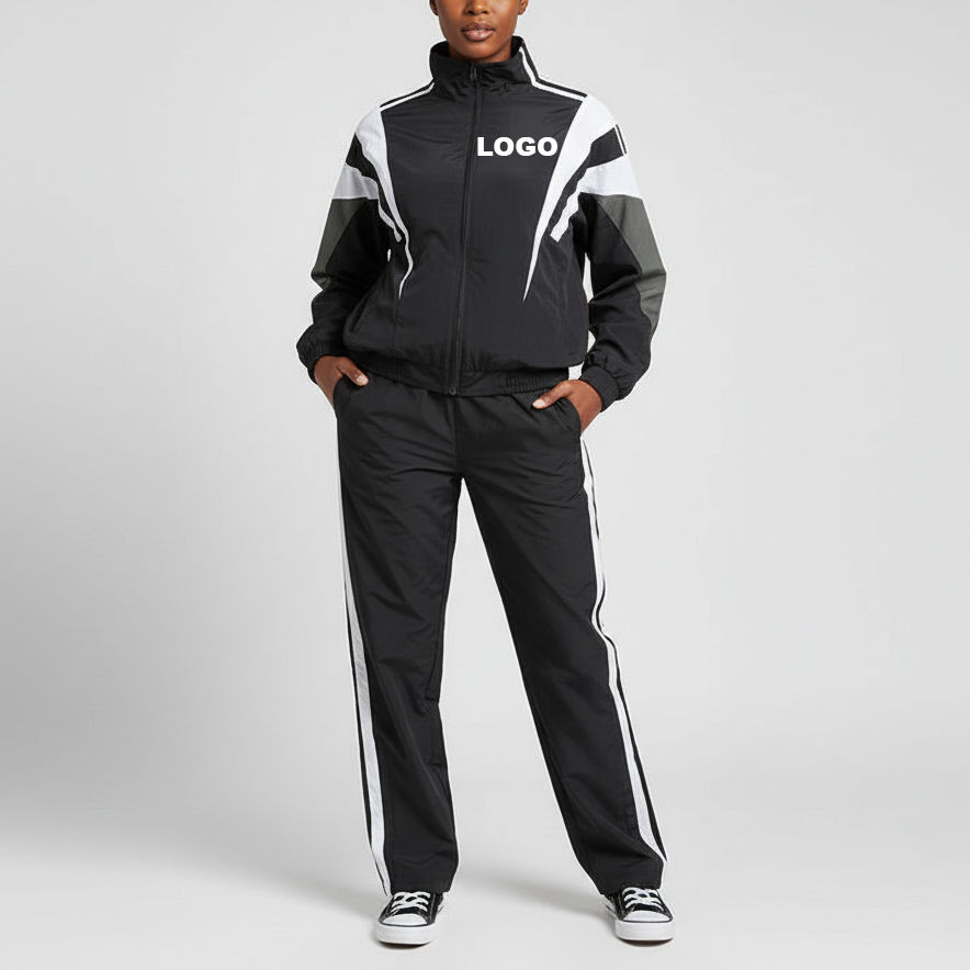 Custom Women's Red Nylon Tracksuit 2 Piece Set Long Sleeve Windbreaker Reflective Piping Tracksuits Printed Plus Size Sweat Suit