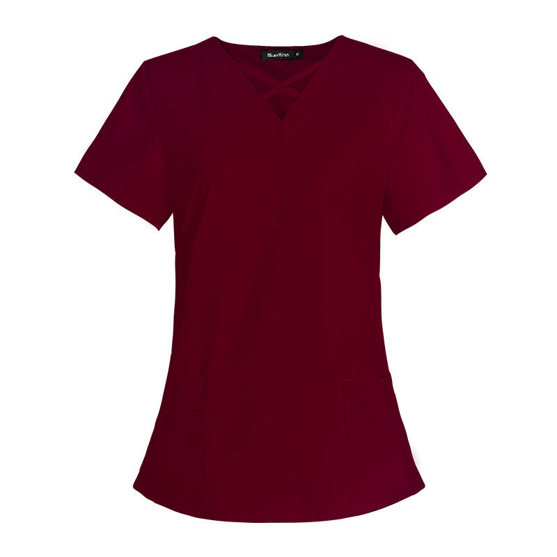 Custom Women's Sand Khaki Workwear Revolution Mock Wrap Scrub Top Doctor Nurse Uniform