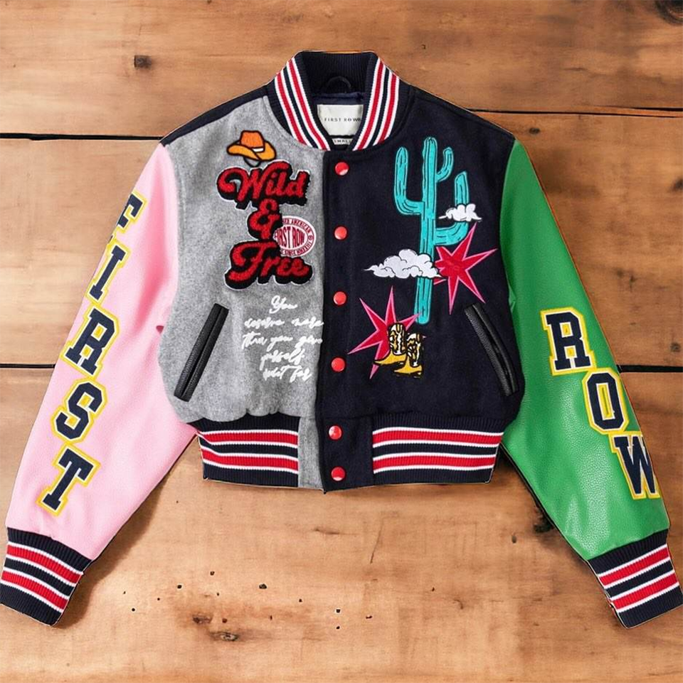 Custom Women's Sheep Skin Leather Varsity Jackets Waterproof Breathable Winter Baseball Letterman Jackets Wholesale OEM Service