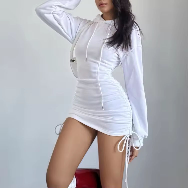 Custom Women's Slim Fit Hoodie Dress Leopard Print Velour Knitted Button Collar Autumn Drop Shoulder Drawstring Hooded Vintage