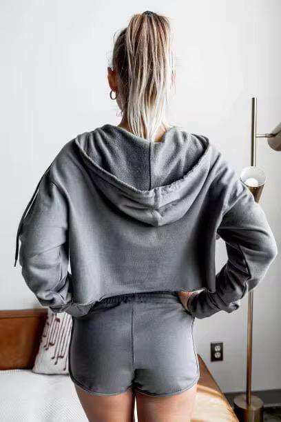 Custom Women's Solid Color Hooded Crop Top and Shorts Set Fashion Casual Two Piece Short Set