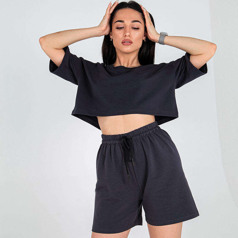 Custom Women's Summer Solid Color Fashion Boxy Fit Casual T-Shirt and Shorts Sports Suit Two Piece Women's T-shirt Set