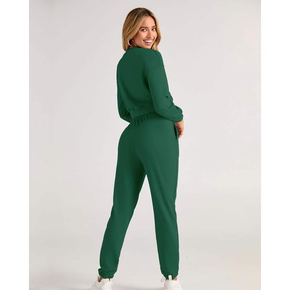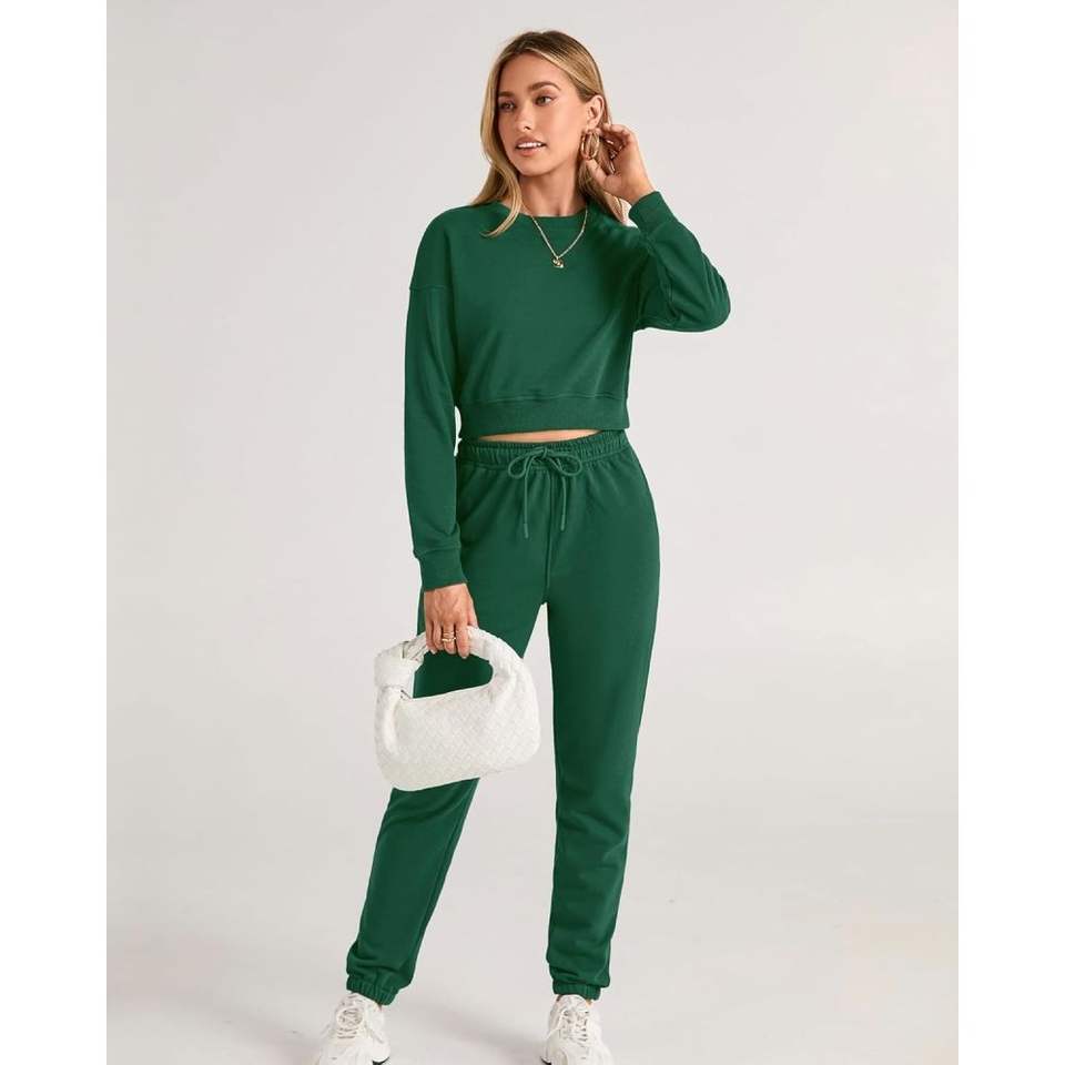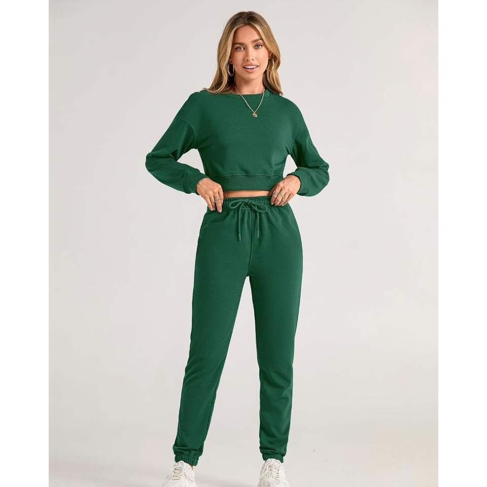 Custom Women's Winter Solid Two-Piece Long Hoodie Tracksuit Set with Custom Logo and Sweat Suit