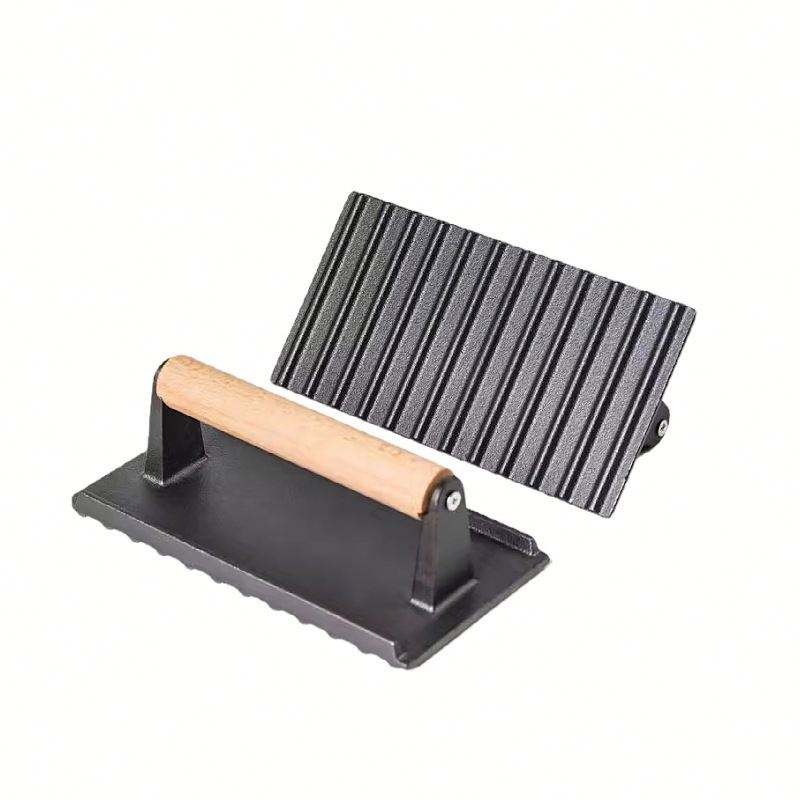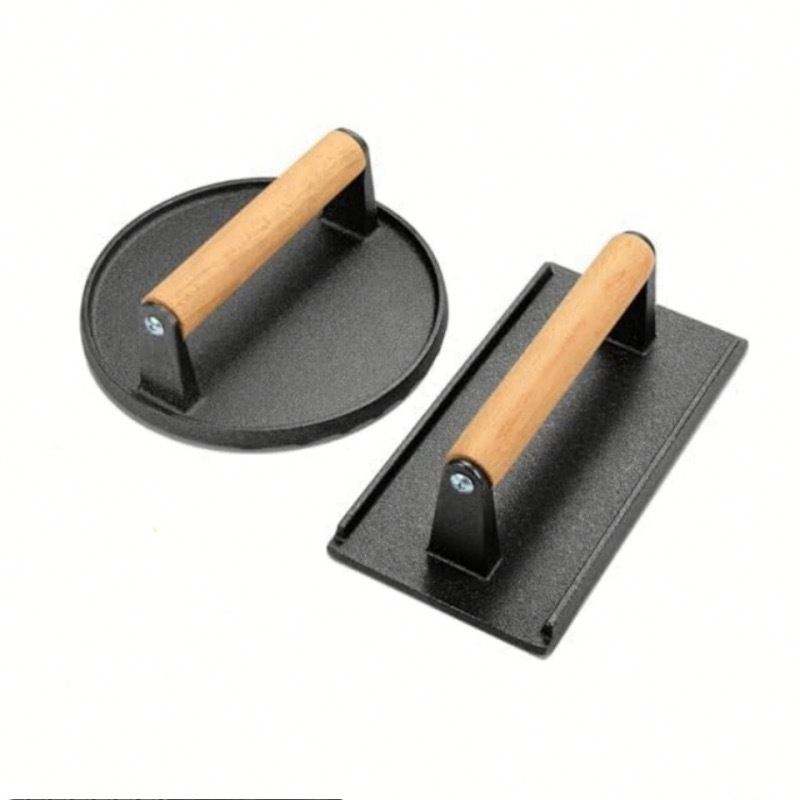 Custom Wood Handle Eco-Friendly Hamburger Patty Maker Metal Meat Press Stuffed Steak Burger Press Bacon Presser Home Kitchen BBQ