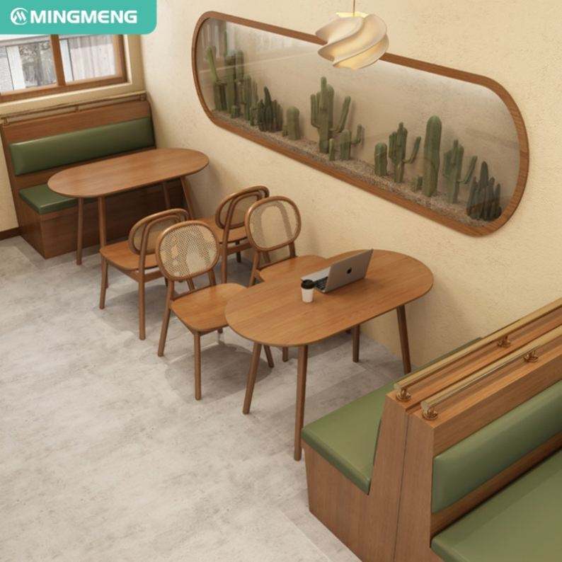 Custom Wood Leather Restaurant Cafe Milk Restaurant Teahouse Booth Sofa Table Chair Combination