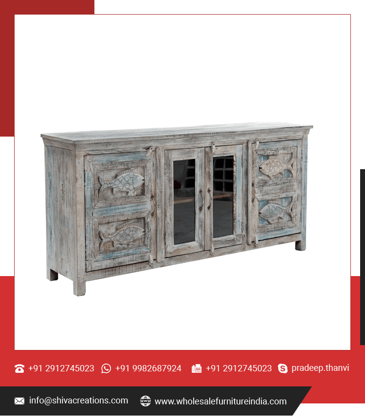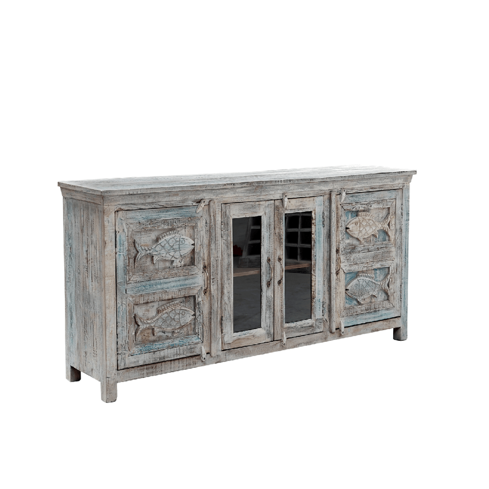 Antique-Style 4-Door Wooden Cabinet Handcrafted Reclaimed Furniture for Outdoor Living Room Bedroom Custom Soulful Apartment