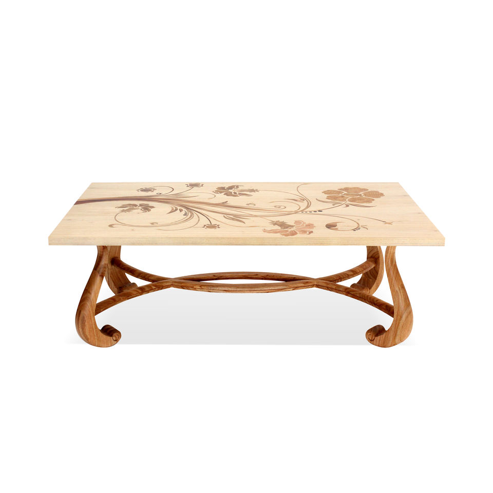 Custom Wooden Coffee Table Floral Inlay Veneer Classic Minimalist Design Living Room Home Hotel Furniture