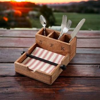 Custom Wooden Cutlery Holder Tableware Storage Box Compartments Kitchen Utensils Holders for Countertop