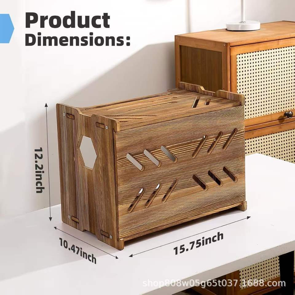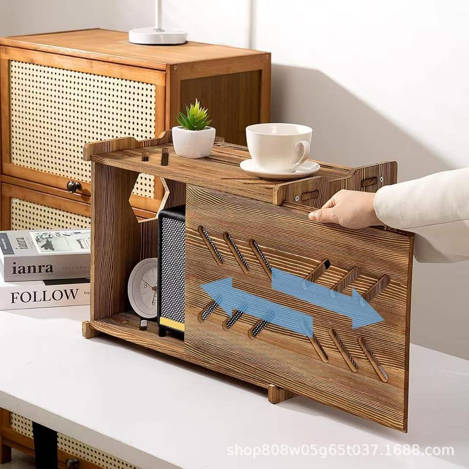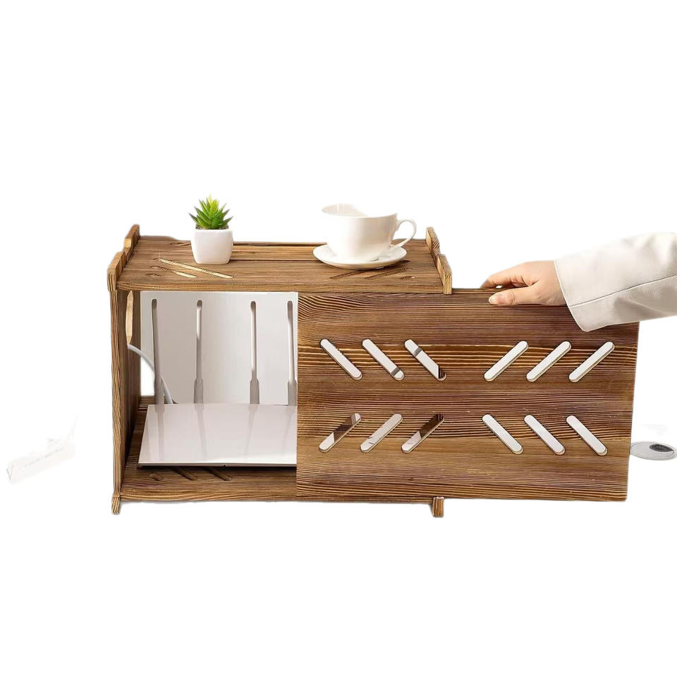 Custom Wooden Router Storage Box Rectangle Retro Color Standing Type Cable Organizer Power Strip Holder