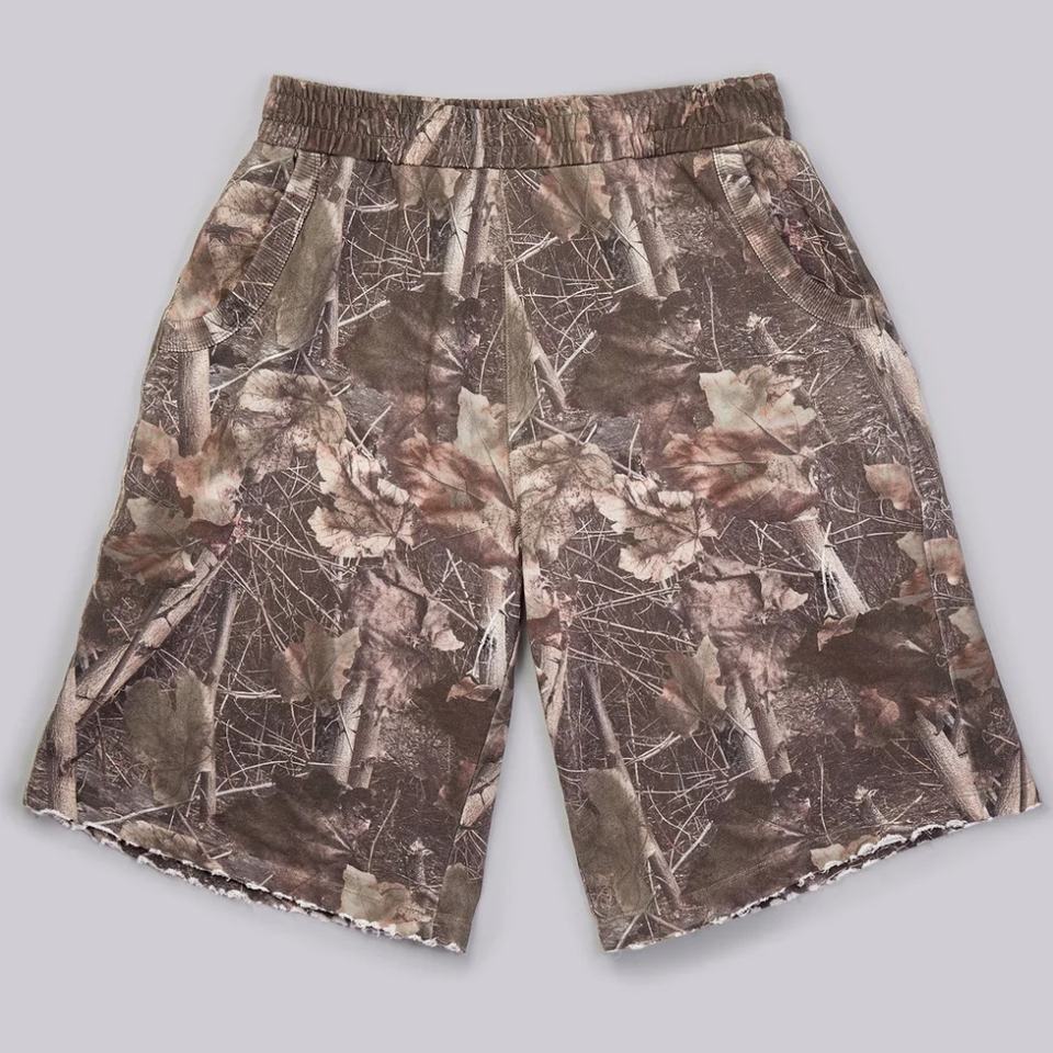 Custom Woodland Camo Jogger Shorts Cotton Fleece Sweatpants Oversized Distressed Hem Raw Edge Joggers Shorts