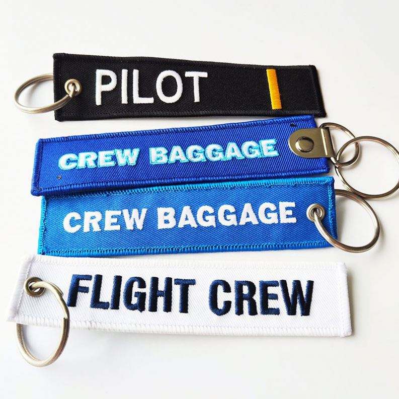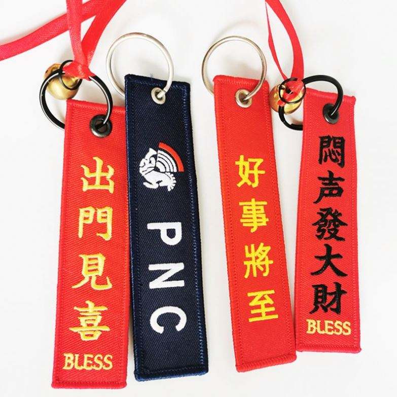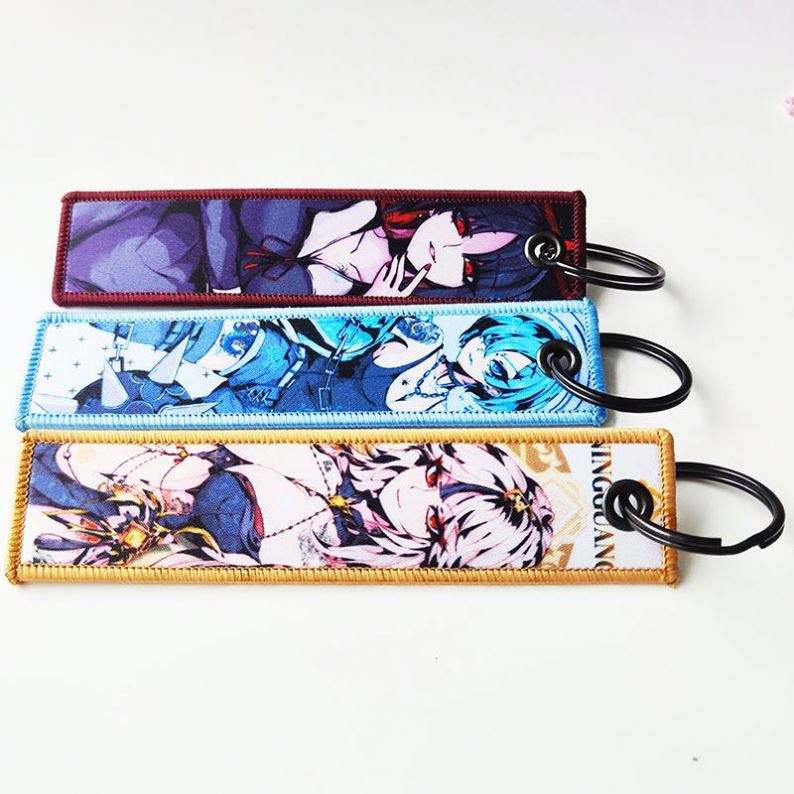 Custom Woven Logo Jet Tag Key Chain Sublimation Fabric Keychain Anime Embroidery Key Tags