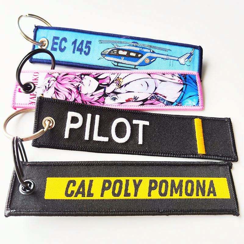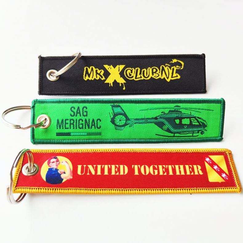 Custom Woven Logo Jet Tag Key Chain Sublimation Fabric Keychain Anime Embroidery Key Tags