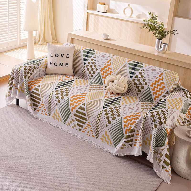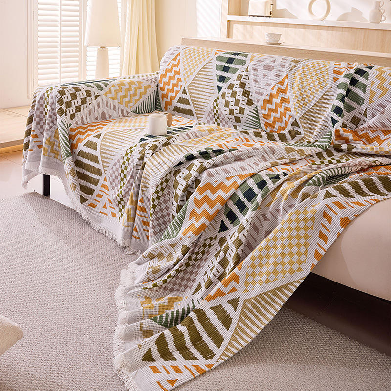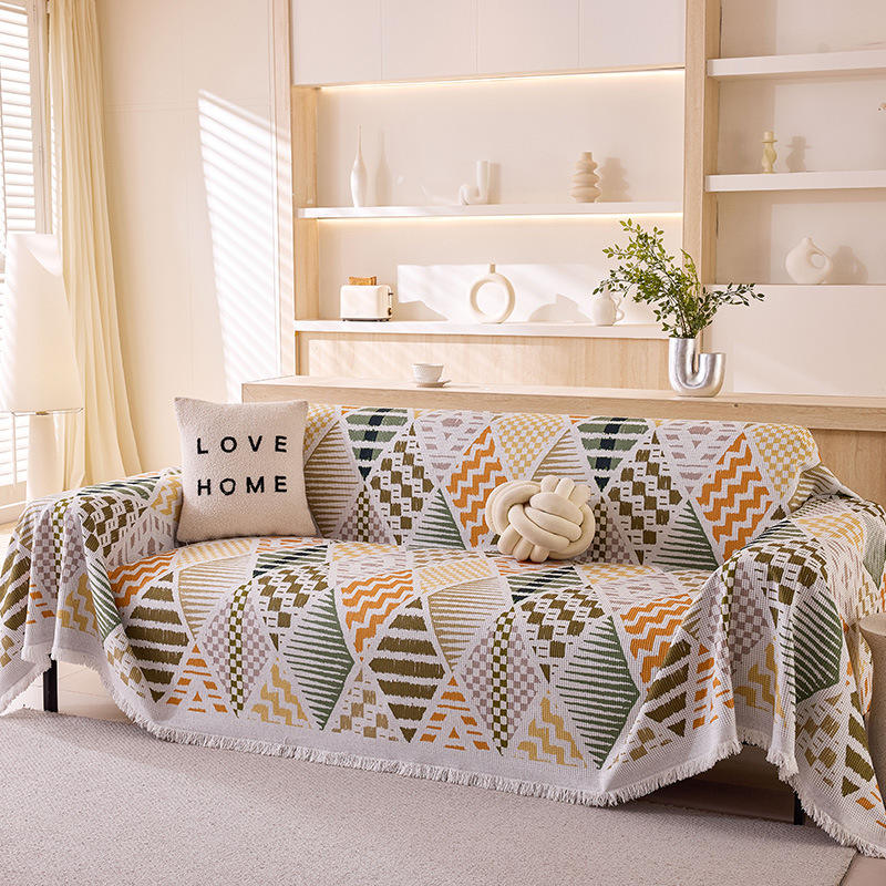 Custom Woven Sofa Blanket Cat-proof Geometric Printed Modern Simple All-season One-piece Chenille Sofa Cover