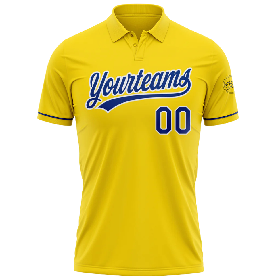 Custom Yellow Sublimation Polo Shirt with Blue Accents Personalized Team Name and Player Number Stylish Comfortable Sportswear