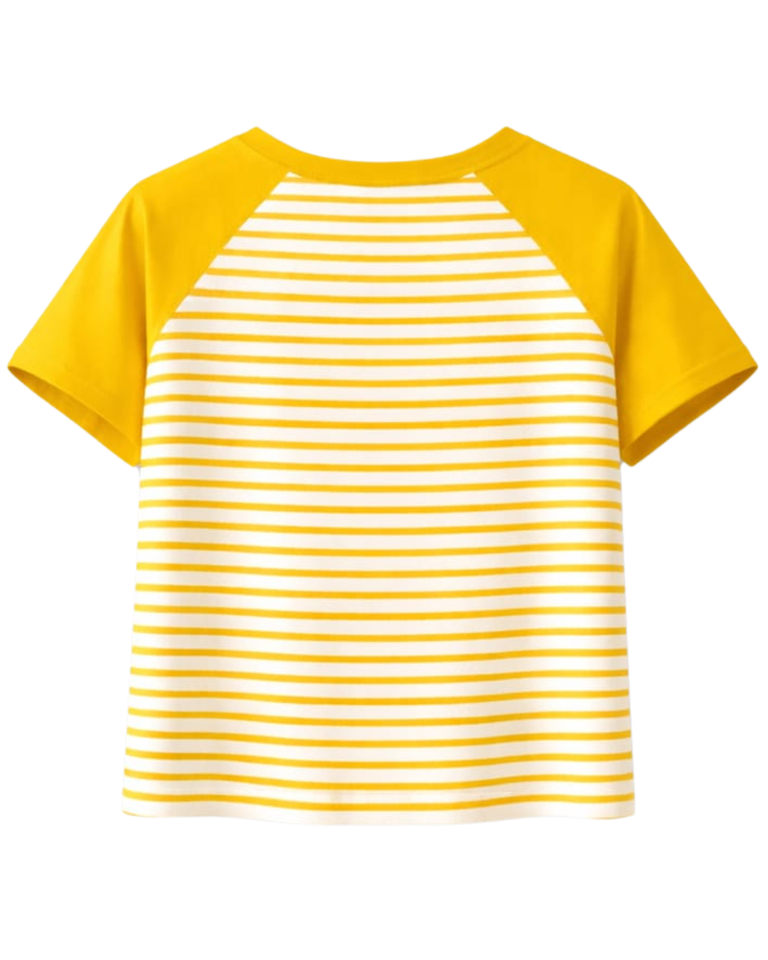 Custom Yellow White Striped Raglan T Shirt Cotton Summer Casual Wear Tee Contrast Sleeve Round Neck OEM Supplier Manufacturer
