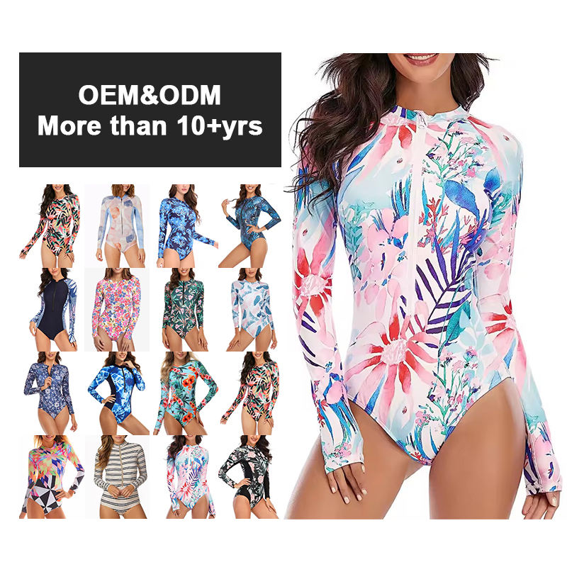 Custom Your Own Design Women Swimwear One Piece Swimsuit Long Sleeves Swimming Bathing Suit Zip Bikini Sufing UPF50+ Rash Guard