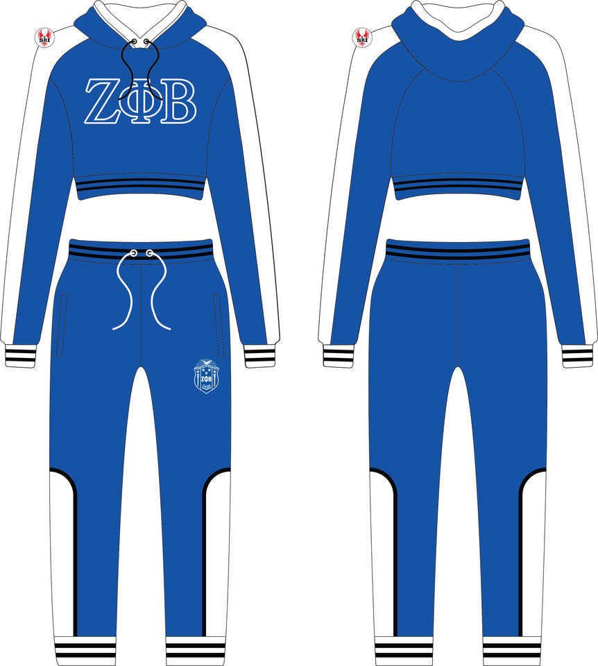 Custom Zeta Phi Beta Winter Women Clothes Sweatsuit Tracksuit Hoodie Crop Top Stacked Sweatpants Joggers Two Piece Women Sets