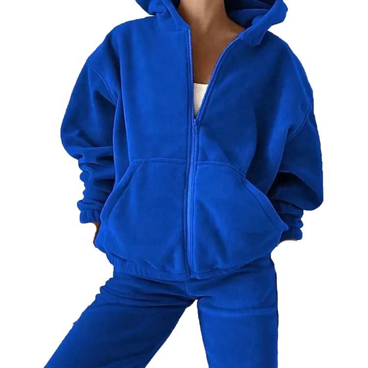 Oversize Velvet Tracksuit for Women Custom Zip-Up Hoodie Velour Jogging Sweatsuit Eco-Friendly Workout Sets for Winter
